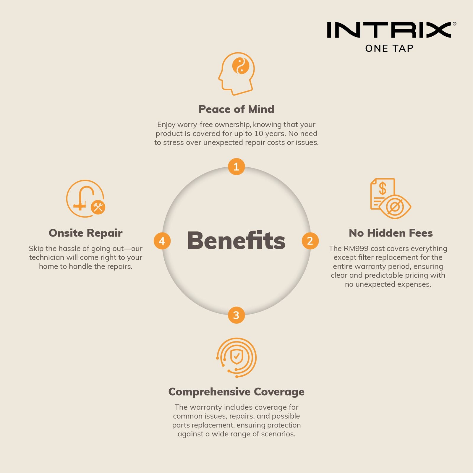 • The warranty covers on-site repairs, all parts, and labor charges but does not include filter replacements.