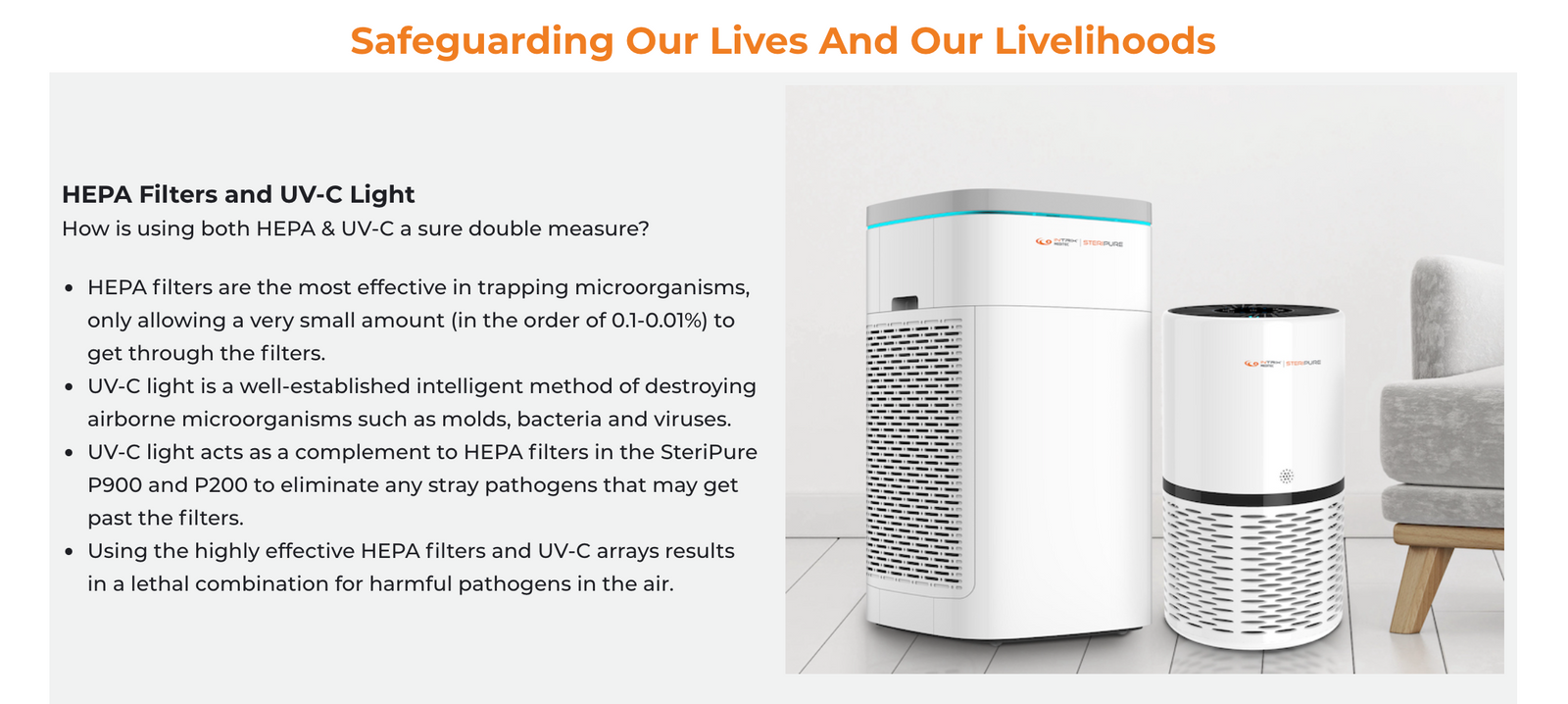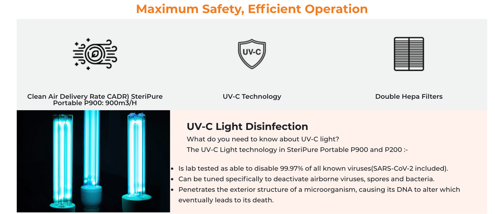 – UV-C Light Disinfection to inactivate bacteria and viruses