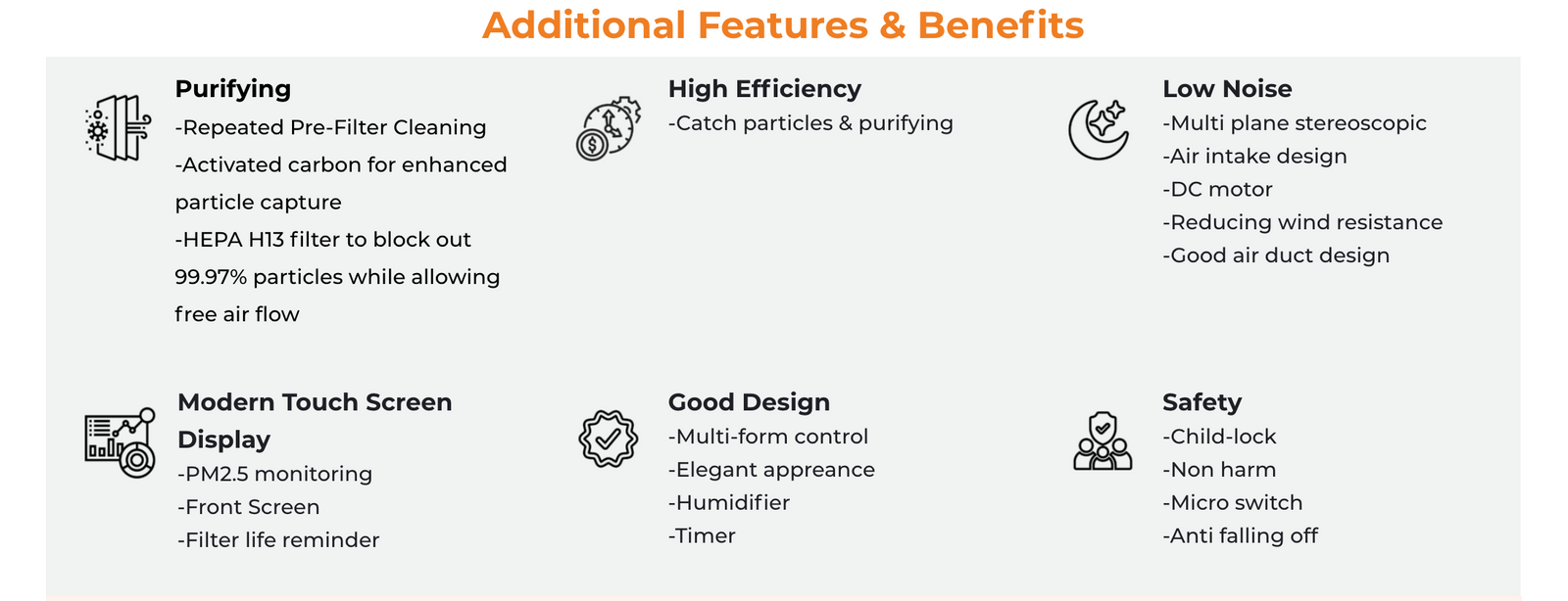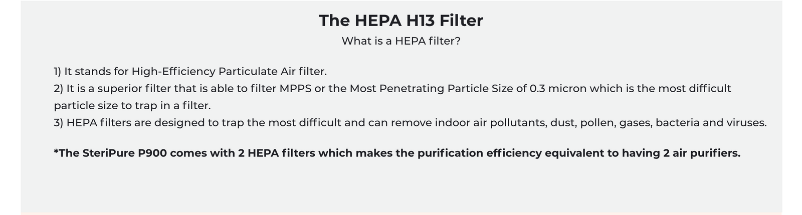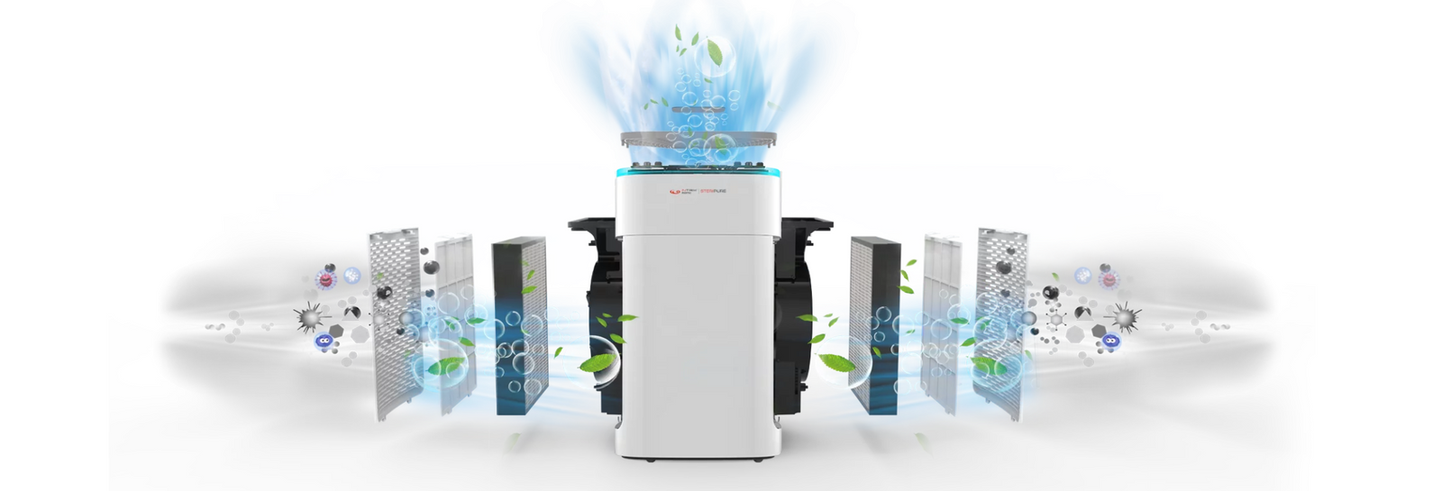 – Intricate and cohesive filtration system (Pre, Double HEPA H13, Activated Carbon, Cold Catalyst and Silver Ion Filters)